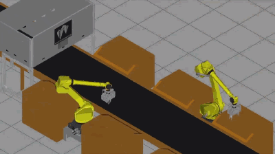 由单个机器人进行分拣操作效率较低,速度较慢,也有很多物品被遗漏了下来。但在实际流水线工作中,多台机器人同时进行工作,遗漏下来的物品就微乎其微了。