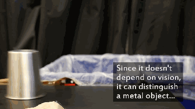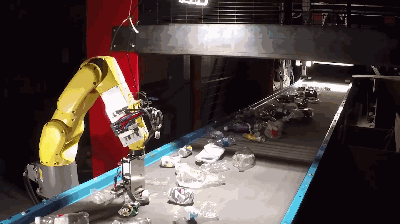 与FANUC的分拣机器人不同的是,这款机器人并没有使用视觉分析系统,而是使用了触觉作为检验材料的方法。在分辨两个外表几乎一致但材料不同的物体时,触觉系统比之视觉分析系统有着更加精准的表现。并且由于是软体抓手缘故,它可以更轻松的抓起各种形状不规则的物品。