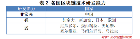 世界知识产权组织(WIPO)的网站数据显示,目前中国的区块链专利数量位列第一,加拿大、新加坡、日本和欧洲也都排名世界前列,而厄瓜多尔、委内瑞拉、突尼斯、塞尔维亚、马绍尔群岛、乌拉圭等国家的研发能力较弱,尚未有已申请成功的专利。