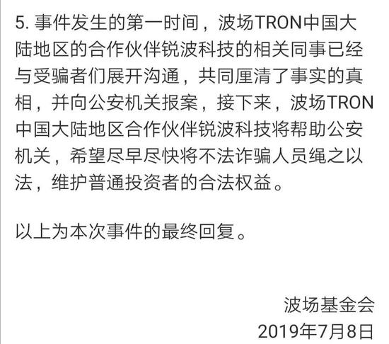 项目方跑路,波场及孙宇晨的“不负责任”的暧昧态度备受投资者指责,而当维权投资者堵到“老巢”之时,波场及孙宇晨才正式作出回应,发布了“关于波场TRON近期事件的声明”。