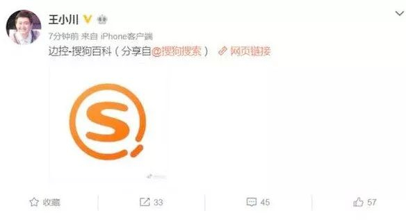 孙宇晨被边控的消息被曝出后,搜狗CEO王小川在微博分享了“边控”一词的搜狗百科。