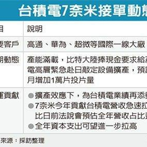 供应链指出,7纳米是台积电领先全球,也是完封三星独揽苹果新世代处理器、同时也是全球第一个代工生产应用于笔电和伺服器的中央处理器的先进製程,加上全球手机晶片龙头高通也选择7纳米订单回归台积电,中国最大IC设计厂华为也在7纳米製程大举衝刺市占,都让台积电7纳米产能塞爆。