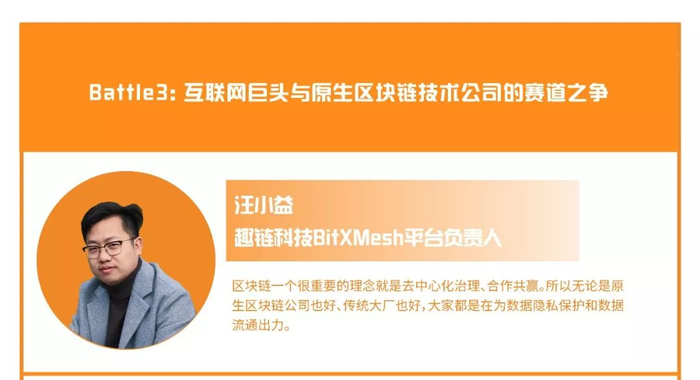趣链汪小益则认为区块链一个很重要的理念就是去中心化治理、合作共赢。所以无论是原生区块链公司也好、传统大厂也好,大家都是在为数据隐私保护和数据流通出力,而且这也必然不是单一一个组织能够解决和完成的事业,需要多方在技术上、业务上进行多点突破。所以更值得关注的是将来如何利用区块链技术提供一个协同发展的平台,为整个社会的隐私保护和数据流通添砖加瓦。