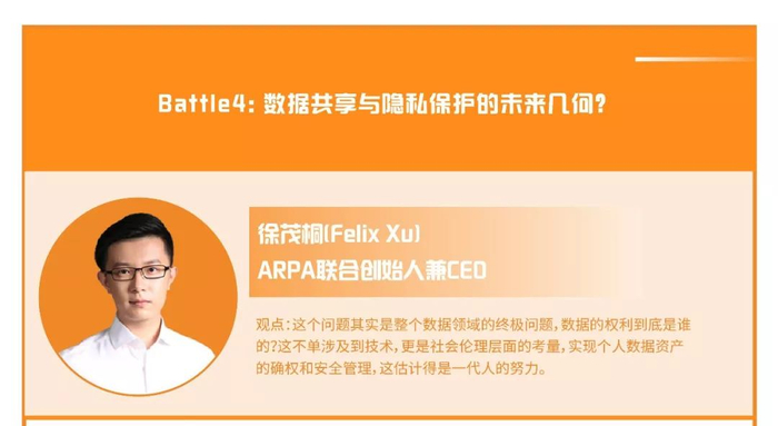 “我预计隐私计算在企业的大规模落地应该是2-5年,而在个人数据的落地应该是5年或更久。虽然目前看到很多场景都有需求,但可能不是P0级任务,更像是中期探索方向,原因是企业对数据价值的认知也才开始几年。而且从个人角度出发,如果我能在确保安全的前提下,通过出租我的数据,获得更精准的广告推送、享受更好的金融产品,还能获得实实在在的物质回报,那么大家都会愿意把自己的数据贡献出来,造成数据的网络效应,从而真正解放数据的所有潜能,真正解决数据权利归属的问题。ARPA的长期设想就是将个人数据可以安全托管在某些节点上,企业调用需要付费,从而实现个人数据资产的确权和安全管理,这估计得是一代人的努力”。Felix Xu介绍到。