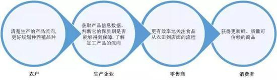 加入联盟的企业将能利用区块链分享信息,根据需求和已有体系选择最佳的食品追溯方式,帮助改进食品召回与验证等过程,加强消费者的信心。沃尔玛通过测试表明,通过应用区块链技术,追溯一袋杧果从农场到门店的过程从以往的几天甚至几星期缩短到了2秒。