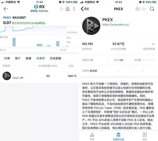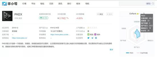 MyToken平台,PKEX交易所注册地为新加坡,综合排名第192位,近24小时内交易额为2.87亿人民币。