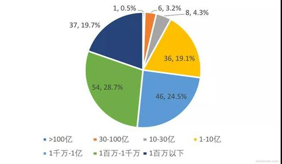 据非小号2018年4月2日数据显示,目前在全球范围内尚能产生交易额的数字货币交易所共有188家。其中单日交易额超过100亿元的仅有BitMEX一家;位于30亿元至100亿元区间的有5家,分别为币安、火币Pro、OKEx、Bitfinex、Upbit;位于10亿元至30亿元区间的有8家,分别为Bithumb、Kraken(K网)、GDAX(Coinbase旗下交易平台)、ZB、币赢国际站、HitBTC、Bitstamp、B网(Bittrex);低于1000万元人民币的合计82家,在所有交易所中占43.6%。