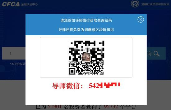 这一页面看似人畜无害。然而,在网页内的搜索框中,用户无论搜索什么内容,网页都会弹出一位“导师”的微信二维码,并引导用户添加导师微信。