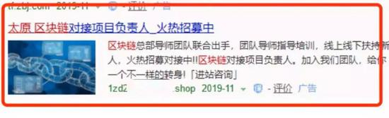 济南、太原等地用户在百度搜索“区块链”一词出现的资金盘广告