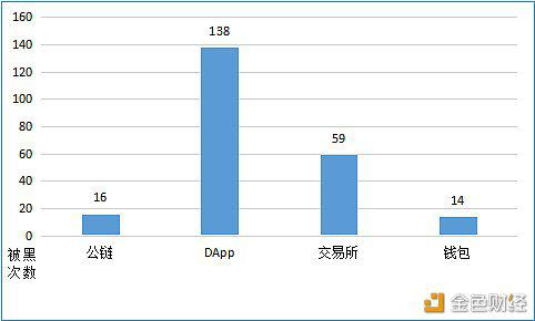 根据慢雾区Hacked区块链被黑档案库数据,区块链被黑事件(除去ETH Token被黑)总计有227起,其中DApp被黑事件就有138起,DApp被黑事件占所有被黑事件超60%。