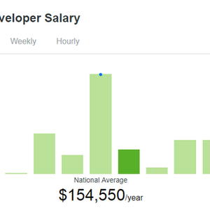 根据ZipRecruiter网站的统计,截止到2019年12月,美国区块链开发人员的平均年薪为154550美金,高于美国科技行业软件开发人员的平均年薪(约14万美元)。ZipRecruiter的统计显示,目前区块链开发人员的薪水在全美范围介于124,500美元(第25个百分点)至203,000美元(第75个百分点)之间。区块链开发人员的平均薪资范围相差不大(最高78,500美元)。
