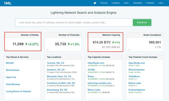 尽管在2017年,比特币经过增加隔离见证功能,比特币核心开发组又开发了侧链闪电网络来实现扩容,但是目前闪电网络使用并不广泛,截止发文,闪电网络里小节点11099个和全节点数量相当,整个通道里的比特币数量还没有过千。