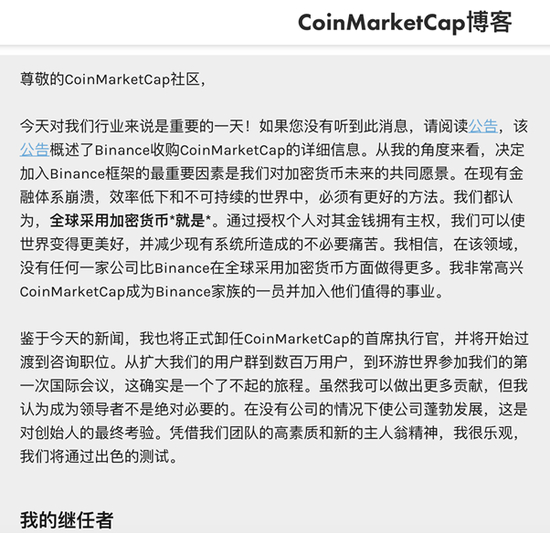 一、CMC加入Binance是为了共同的愿景,这个愿景就是相信加密货币的未来。