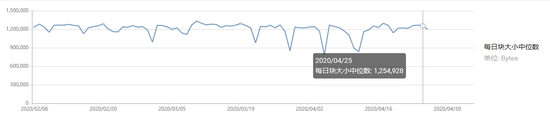 比特币每日区块大小中位数 数据来源:BTC.com