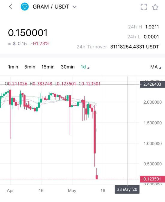 因为今天帕维尔·杜罗夫的公开信,截至发稿前,币夫上Bitforex的GRAM已经从前一天的1.59美元跌为0.15美元,跌幅高达91%。