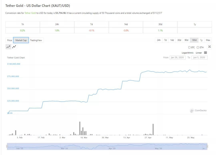 2020年1月下旬,Tether公司在以太坊网络上推出了锚定实物黄金的XAUt(Gold Tether),据官方描述,每一枚XAUt都会锚定一盎司实物黄金发行。而自XAUt上线4个多月以来,发展迅猛,其市值已经攀升至8600万美元左右,目前已经上架Bitfinex、FTX、BTSE、Deversifi及Delta Exchange等5个交易所。不仅Tether公司,美国纽约州持牌数字资产服务商 Paxos,也在以太坊网络中发行了“数字黄金”PAXG,其流通市值高达4800万美元。
