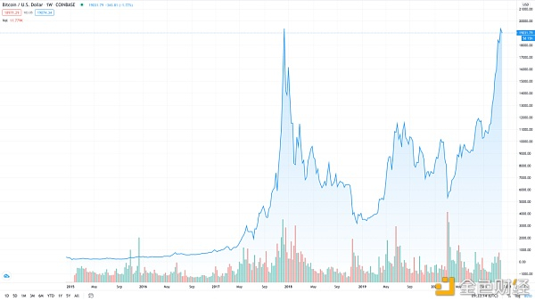 比特币的历史最高价格有待商榷。虽然许多交易所在2017年12月录得19600美元左右的高点,但一些人认为,数字货币需要突破其关键的20000美元才能录得新高。