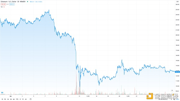 比特币年初的价格在7195美元左右,而以太坊的价格则只有129美元,与两年前的历史最高点相比,下跌了91%。