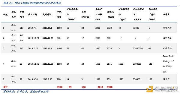 2019年7月,收购4475台比特币矿机,挖矿能力从57 PH/s翻倍至大约112 PH/s。