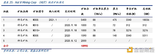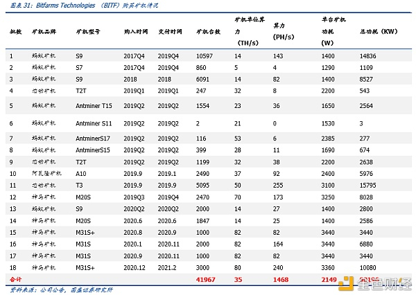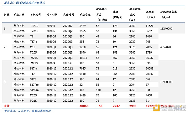 在我们统计的数据中,2020年,部分挖矿公司购买二手矿机或从第三方渠道购买矿机。我们认为,主要原因还是价格和到付部署时间。二手矿机不仅价格相对较低,而且多是打包出售,不需要生产周期,安装部署时间短,能更早的赶上这波上涨行情,创造收益,是相对理性的策略。