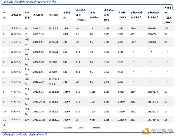 部分公司从生产商如比特大陆直接购买,不仅价格相对较高,而且到付部署时间也较迟。Marathon Patent Group在比特大陆订购的1.7亿美元矿机需要在2021年12月才能交付完成。