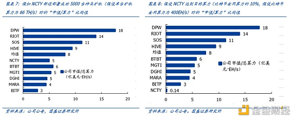 我们注意到,各公司均在“大揽”算力,部分给出了中长期目标,在短期不可证伪中,市场预期将同步更新。例如算力增速弹性最大的NCTY,其计划达到比特币全网算力的10%,届时其“市值/算力”进一步降低。