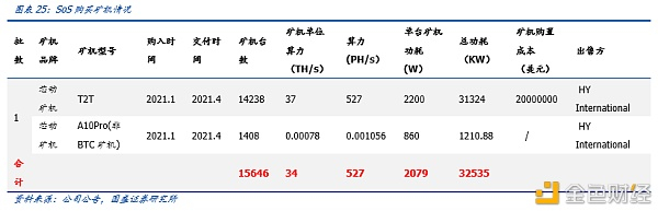 2021年1月,公司继续购买6440台Canaan AvalonMiner 1246,到2021年底全部部署后,算力将增加到估计的1229 PH / s。公司新目标是到2021年底达到2000 PH/s。