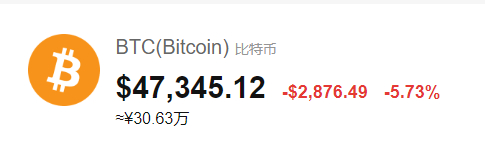 2月26日,随着美股和全球债券市场大跌,比特币、以太坊等一众数字货币再现逾10%跌幅。截至2月26日12时,比特币价格报47345.12美元,下跌5.73%。