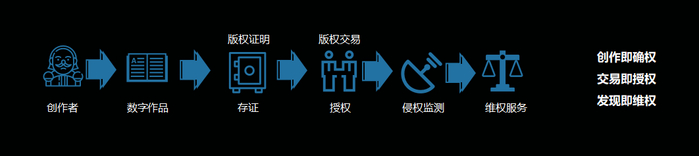 版权交易层面,当作品在线登记后便可由权利人直接明码标价,在平台展示、交易,为供需搭建桥梁,促进版权更快变现。区块链真正的价值正是让版权这种数字资源实现资产化,可以低成本交易。