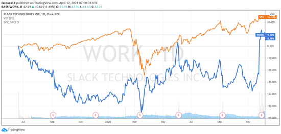 最经典的就莫过于$Slack Technologies(WORK)$ 前期的表现了。