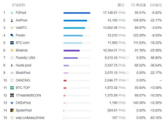 同时据OKLink数据显示,AntPool、Poolin、Huobi Pool等具有中国背景的排名全球前十的比特币矿池算力急剧下降,近24小时算力下降幅度分别是21.05%、16.45%、31.19%。