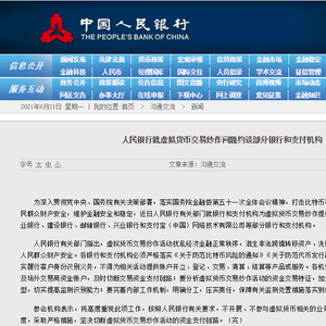 虚拟货币监管越来越严。据央行官网6月21日消息,近日人民银行有关部门就银行和支付机构为虚拟货币交易炒作提供服务问题,约谈了工商银行、农业银行、建设银行、邮储银行、兴业银行和支付宝等部分银行和支付机构。