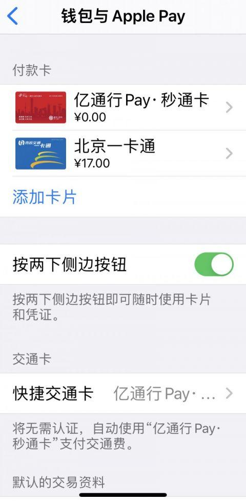 北青-北京头条记者再次进入“亿通行”App,发现有一个“便捷交通卡”的提示。原来,如果你的iPhone上之前开通过其他交通卡,还需要前往在手机钱包把这张亿通行Pay.秒通卡设置为快捷交通卡,才可以无需认证,自动付费。