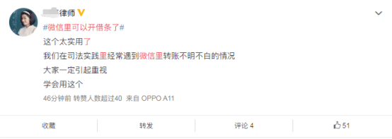 腾讯电子签相关负责人表示,推出“小借条”功能,就是为了给用户的借款活动提供规范、合法的服务。希望通过低门槛的应用,让更多用户体验到电子借条的便利,为用户间的借款行为多一分保障。