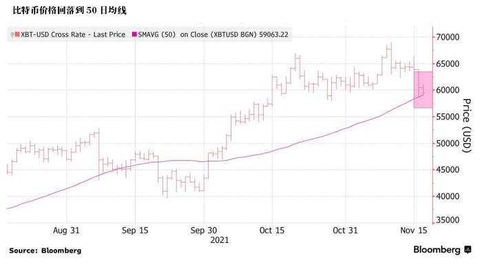 短期内,投资者可盯紧50日均线附近的支撑作用。周二比特币跌到了6万美元关口略下方,并在50日移动均线附近获得支撑。周三,比特币价格再次测试这一支撑。