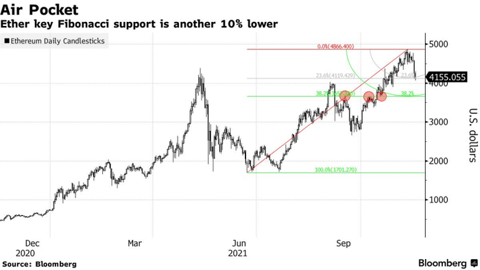 值得注意的,在加密货币中,以太坊的一系列关键技术水平(斐波那契线),却显示其还有进一步下滑的风险。