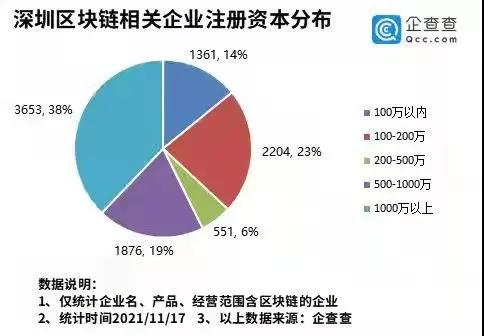 据企查查统计,深圳市存续区块链企业达8700家,而注册资本在1000万元以上的只有3600多家,占比为38%,而注册资本在500万元以下的则占43%。