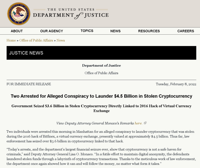 据悉,这是美国执法部门追缴的最大一笔加密货币,也是美国司法部有史以来涉案价值最高的一次金融追缴行动。