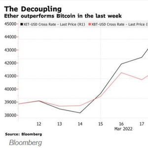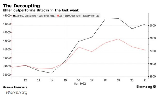 随着3月10日最终测试网的推出,以太坊从PoW到PoS(The Merge)的升级越来越接近成为现实,以太坊表现再次超过更广为人知的比特币。据悉,以太坊过去7天内上涨近14%,而比特币上涨了5.9%。