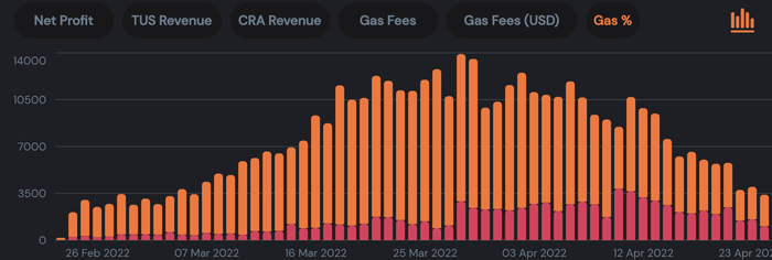 当天 Avalanche 网络的总费用收入中有超过 30% 可能来自 Crabada 机器人,照此速度,一年消耗网络费用约为 1.2 亿美元。