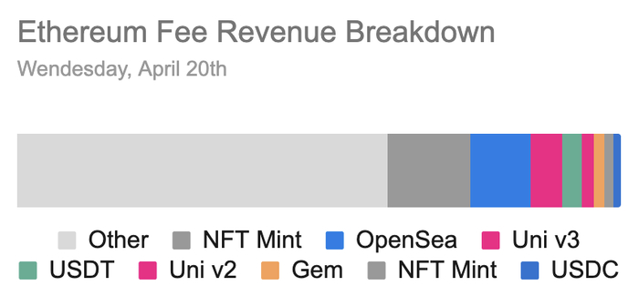 9/ 作为参考:当天以太坊上按费用消耗计算的头部合约包括:OpenSea、Uniswap、Gem、USDT 和 USDC。没有任何一个合约消耗费用占比超过 15%。