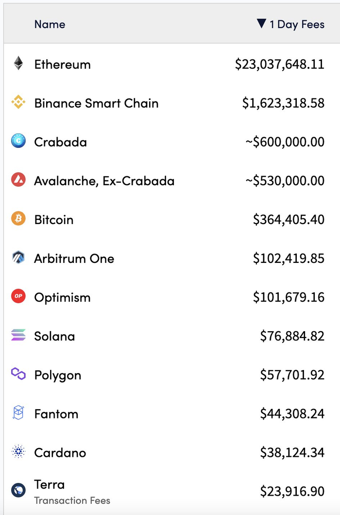5/ 感受一下规模:周三,Crabada 为 Avalanche 带来了 60 万美元的交易费用。这比比特币、Solana、Polygon、Fantom 和 Terra 当天产生的交易费用加起来还要多。那么谁在使用 Crabada?