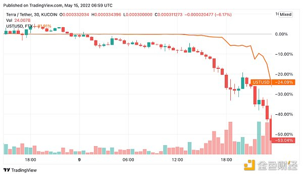 但在接下来的几个小时和几天里,UST 挂钩随着 LUNA 价格逐渐下跌。