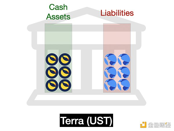 可以将 Terra 视为中央银行:它以 UST 的形式承担负债,并以 LUNA (其区块链的原生代币)的形式拥有资产。中央银行只有一个任务:保持 UST 始终以 1 美元交易。它通过本质上“做市”UST 来做到这一点——它总是用 1 UST 换取价值 1 美元的 LUNA(它使用链上预言机监控其价格)。