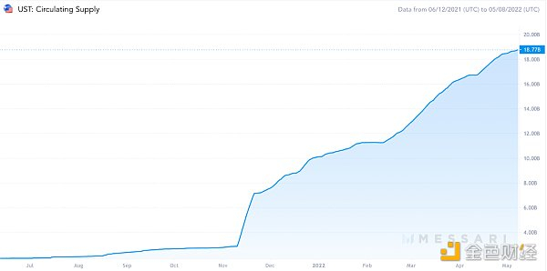 越来越多的 UST 开始被铸造,只是为了获得 UST 收益而存入 Anchor。在鼎盛时期,Anchor 持有超过 140亿美元的 UST,并成为几乎所有现有 UST 的接收器。它单枪匹马地使UST成为世界第三大稳定币。
