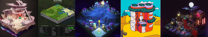 从左到右分别是Otherdeed、NFT Worlds、Genopets Genesis Habitats、SolSteads Surreal Estate、NANOPASS