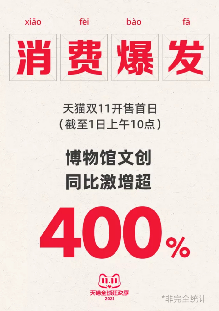 这样的强吸金能力并非偶发现象。数据显示,去年天猫双11,共有近百家博物馆参与活动。开售首日,博物馆文创产品销量同比激增超过400%,成为了今年的“大黑马”。河南博物院的玉佩棒棒糖、三星堆博物馆的盲盒、故宫博物院的十二花神固体香膏、新疆博物馆烤馕形鼠标垫、敦煌研究院的飞天书签等文创产品均获得了高销量。