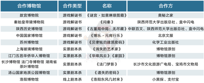 更有大批博物馆将馆内文物授权给盒装剧本杀、解谜书等产品。陕西历史博物馆便与中联百文、陕西师范大学出版总社、盒中闪电四方联合推出了《古董局中局:无尽藏》解谜书,去年9月,洛阳博物馆将三件馆藏文物“晋归义胡王”金印、透雕龙纹玛瑙璧以及金狮串饰授权小黑探、支付宝共同开发了《洛阳东风几时来》线上剧本游戏作品。