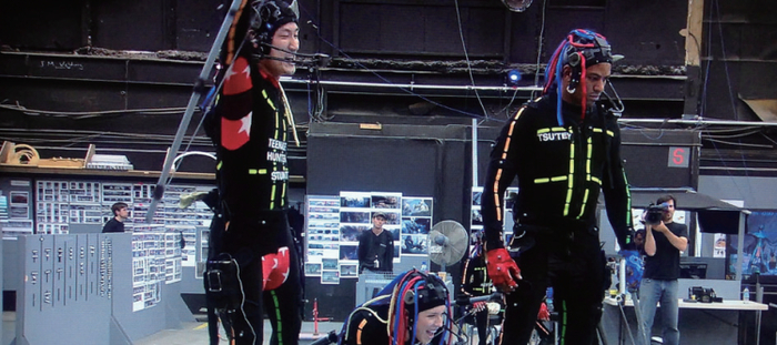 《阿凡达》拍摄中的演员戴着动捕设备