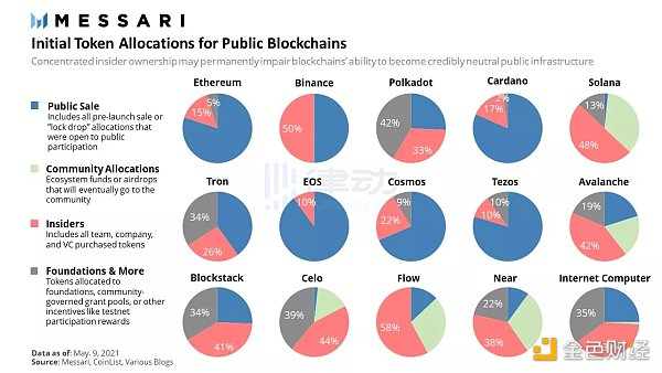 Messari 公布的公链初始代币分配